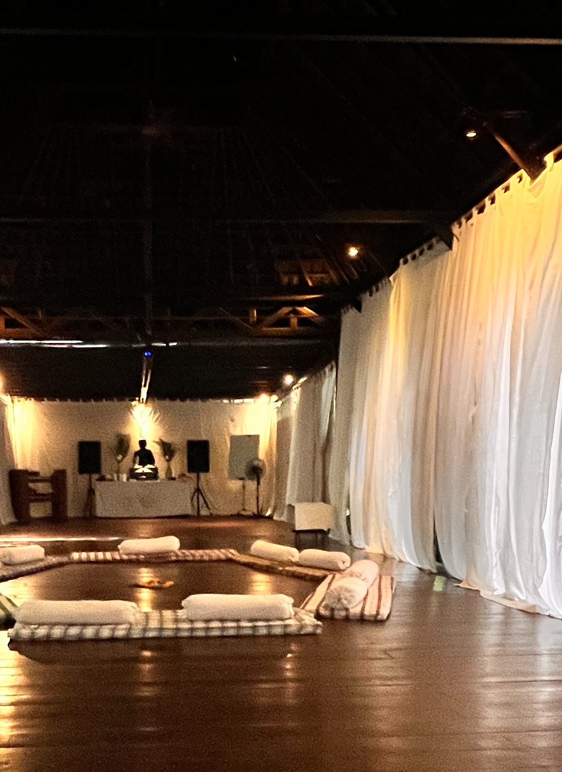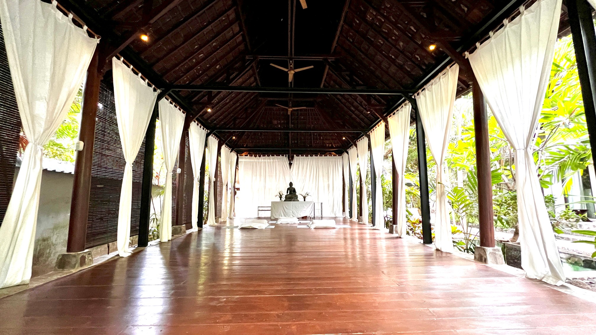 An open-concept wooden hall with the size of about 110m2. Adorned with a wooden floor and located deep in our Villa grounds – this is one of the most comfortable areas to gain your focus and get into a deep Meditation.