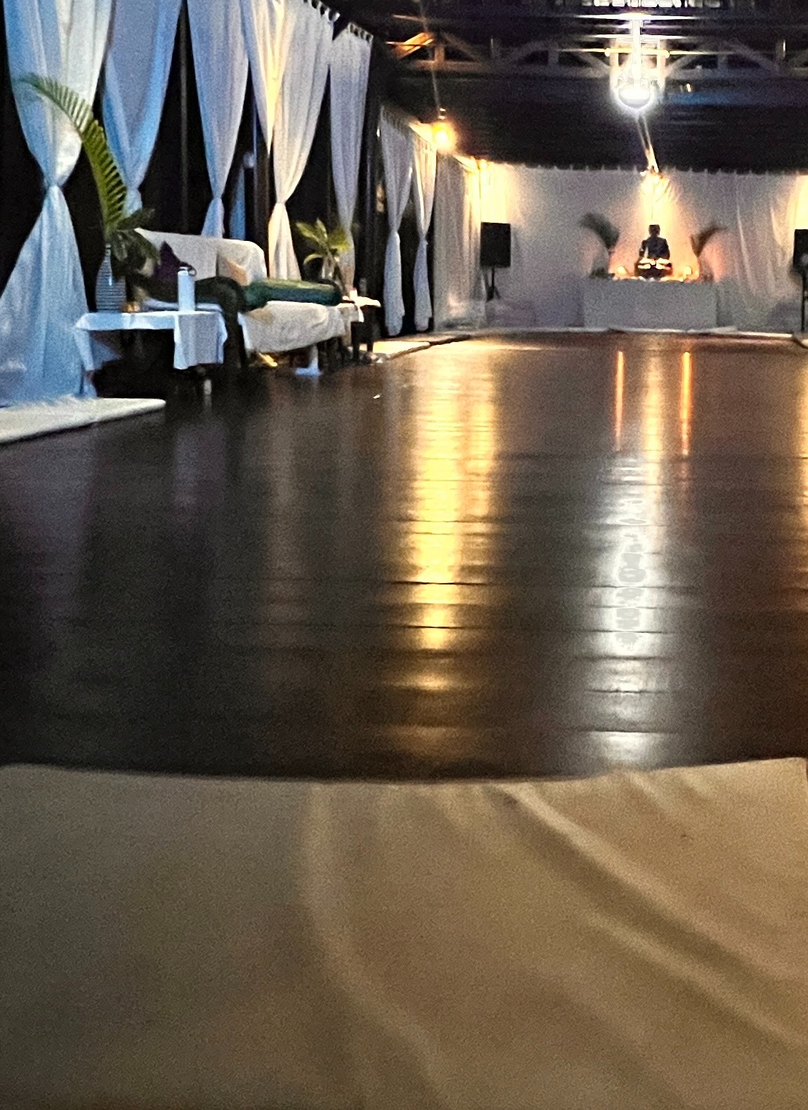 An isolated indoor hall with the size of about 200m2. Made from a concrete construction, equipped with Air Conditioning and customizable lighting – this is the most exclusive and isolated space within the Villa Boreh grounds.